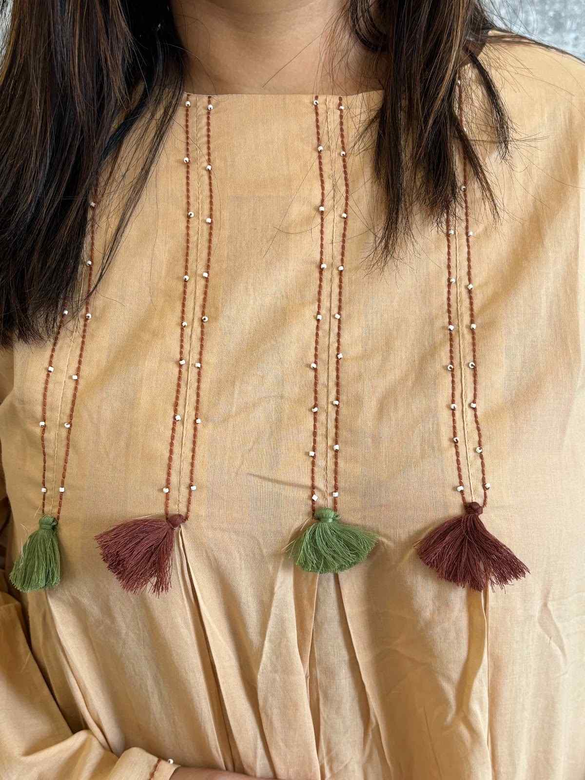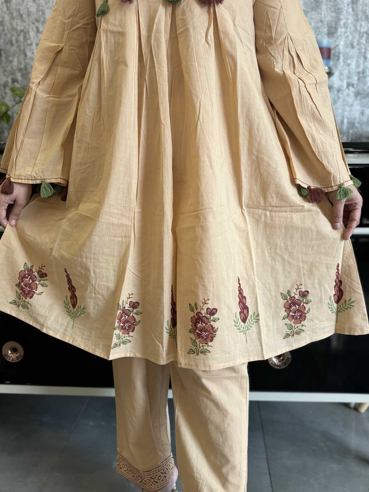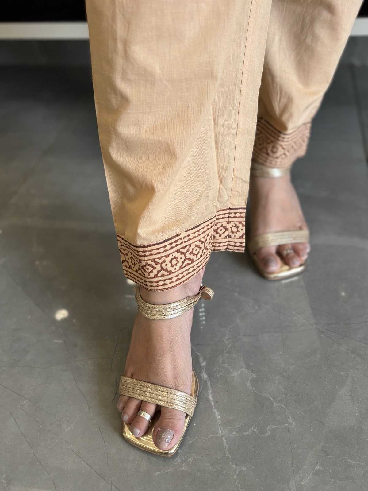 Pure Cotton Hand Block Print Co-ord Set With Bell Sleeves in Light Brown