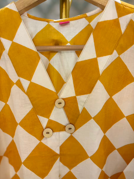 Checkered Print Pant Set in Cotton in Mustard