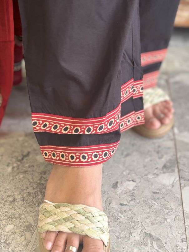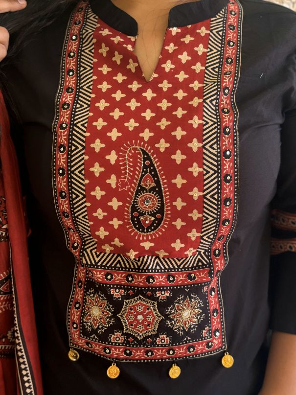 Pure Cotton Hand Embroidered Suit Set with Block Print Dupatta in Black